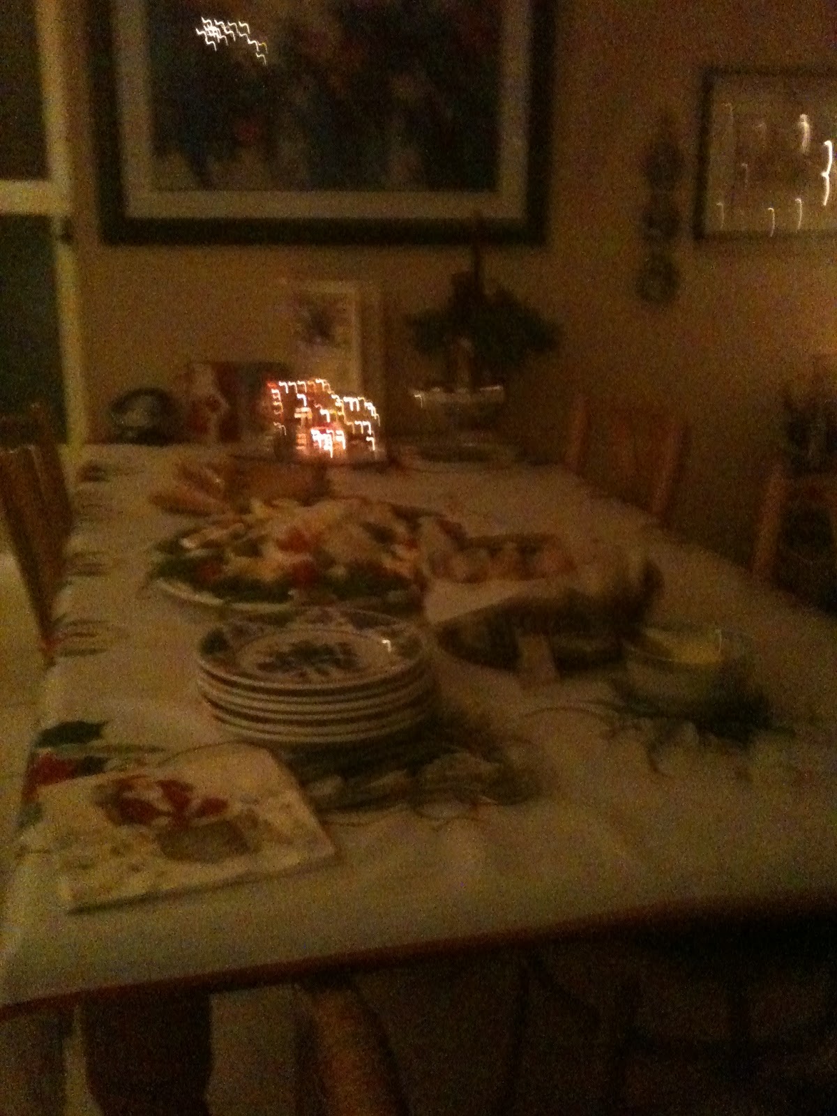 Na al het harde werk was het tijd om aan tafel te gaan en daar stond een heerlijk maal van een varkenshaasje met champignons. aardappels en in ham en kaas gerolde witlof klaar. Doe daar een mooie St. Emillion grand cru blij en het was genieten geblazen. Na een heerlijke fruit salade van kiwi en ananas gevolgd door koffie en ik had echt niets om over te klagen. Toen ik dan ook naar huis ging was iedereen tevreden. Ik had een heerlijke maaltijd achter de kiezen, mijn ouders hadden een computer die beter werkte en waar weer een printer en een fototoestel op konden en poes had haar stoel weer terug.